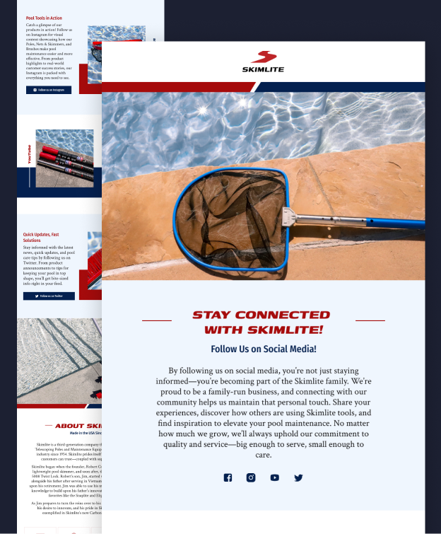 By the end of the engagement, Skimlite had evolved from a brand with fragmented assets and limited marketing infrastructure into a fully modernized, professionally positioned company supported by structured systems, scalable creative, measurable analytics, and consistent multi-channel communication. i9media not only elevated brand perception across digital, print, retail, and trade environments, but also established the operational foundation necessary to sustain growth. The transformation positioned Skimlite with a unified identity, organized internal systems, empowered dealer relationships, and measurable marketing performance—creating lasting value beyond individual campaigns or creative executions.